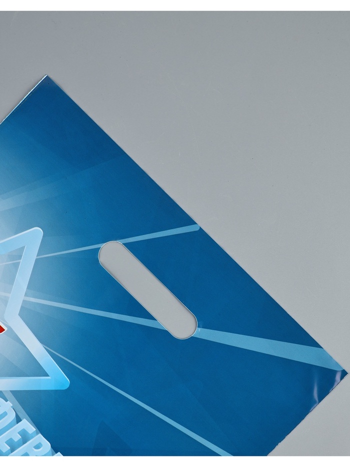 Пакет полиэтиленовый с вырубной ручкой, прочный с оригинальным рисунком.