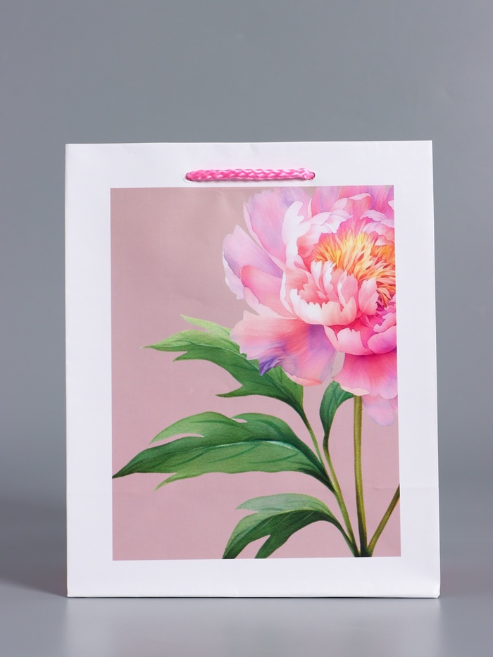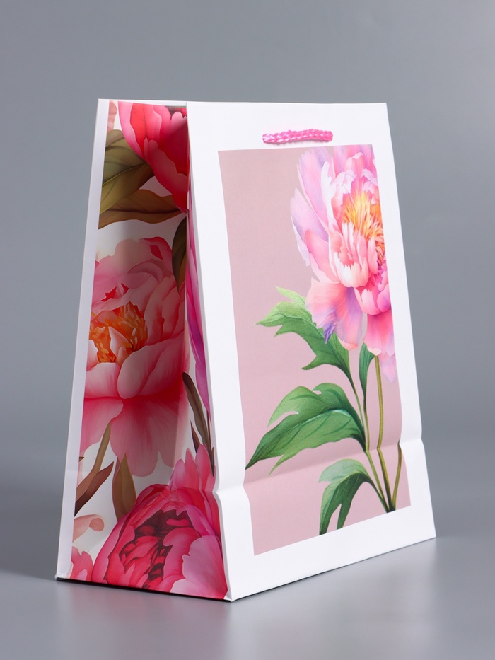 Пакет подарочный "Букет пионов" ламинированный 18 х 22,3 х 10 см
