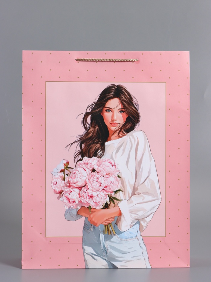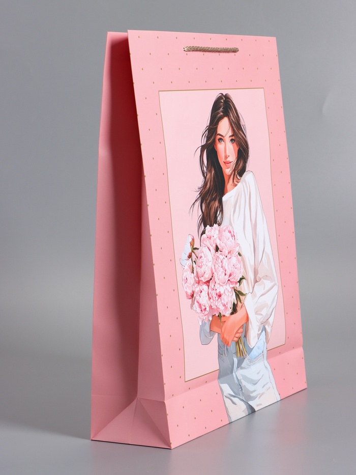Пакет подарочный ламинированный «Букет радости», розовый, 33×42.5×10 см