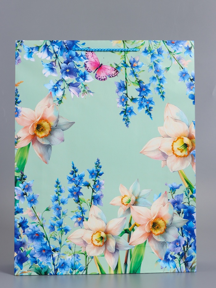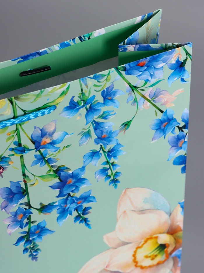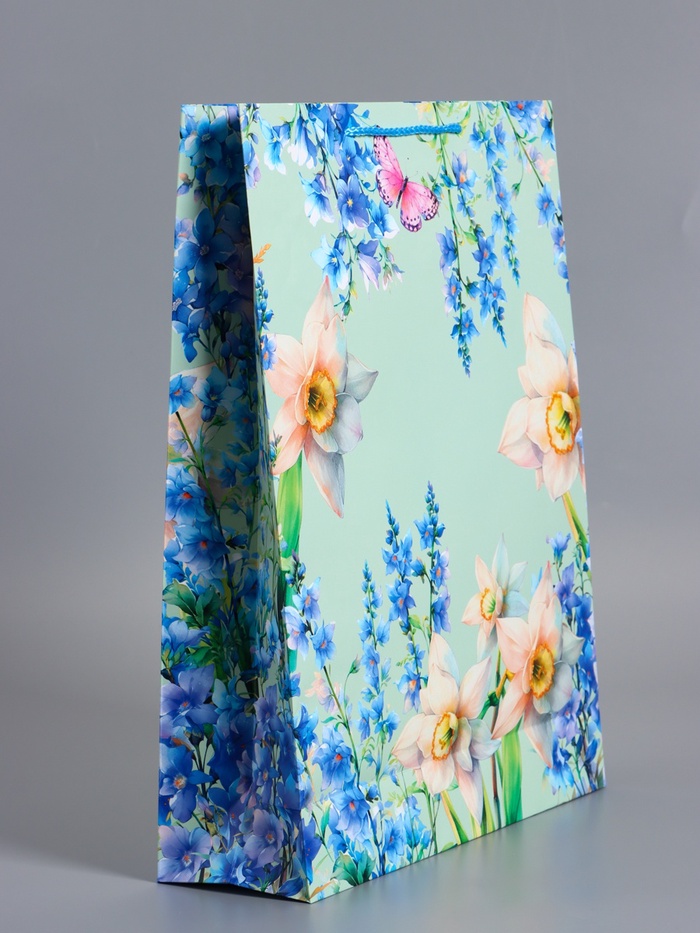 Пакет подарочный ламинированный «Цветочная радость», бирюзовый с голубым, 33×42.5×10 см