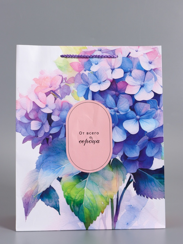 Пакет подарочный ламинированный «Цветочные мелодии», розово - сиреневый, 26×12×32 см