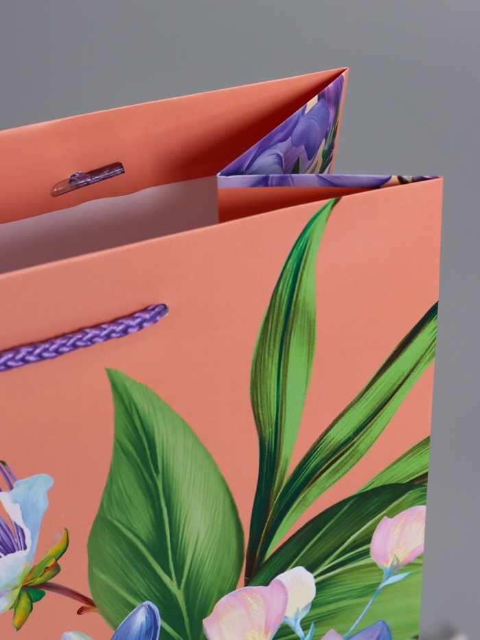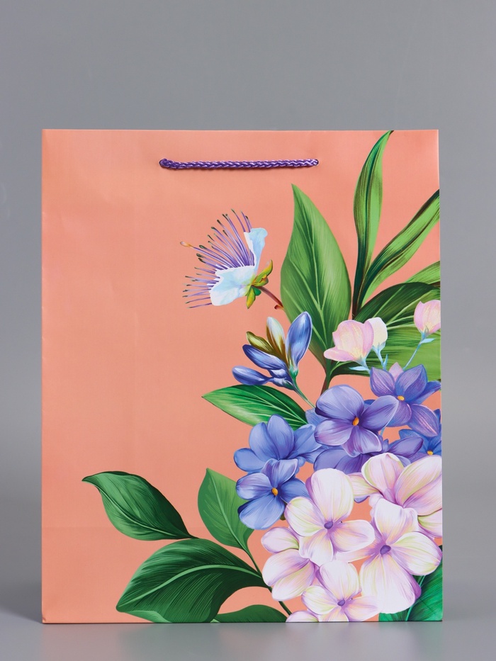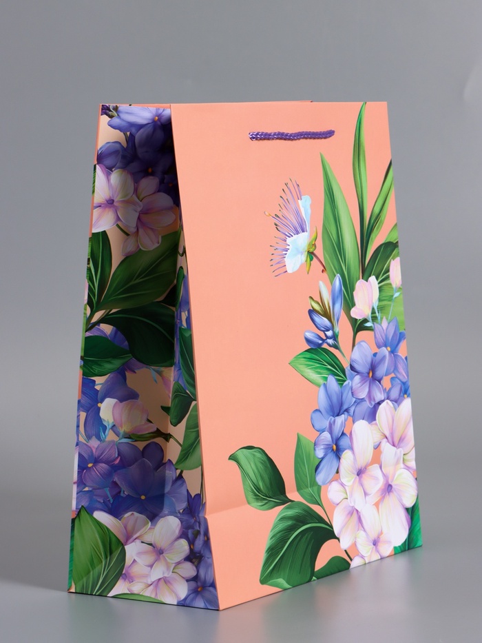 Пакет подарочный ламинированный «Цветы эмоций», персиковый, 26×12×32 см