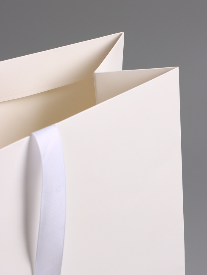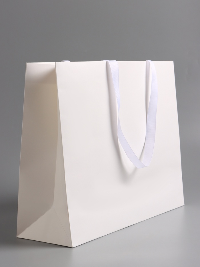 Чистый образ для стильного подарка. Белый ламинированный пакет формата XL — это элегантная и универсальная упаковка. Его нейтральный цвет и глянцевый блеск создают ощущение свежести и торжественности, позволяя самому подарку быть в центре внимания.