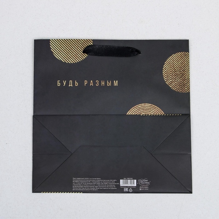 Пакет подарочный ламинированный квадратный, упаковка, «Будь разным», 22×22×11 см