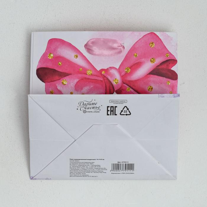 Пакет подарочный ламинированный квадратный, упаковка, «Поздравляю!», 14 х 14 х 9 см