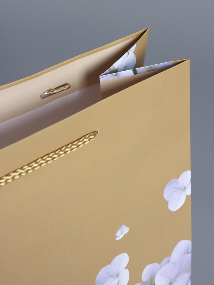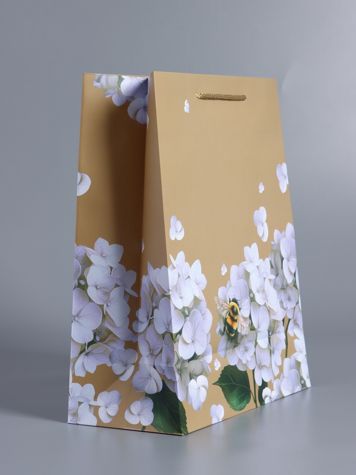 Пакет подарочный ламинированный «Пчёлка на гортензии», бежевый, 26×12×32 см