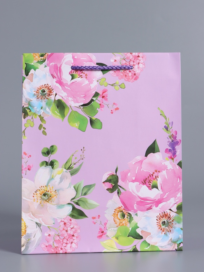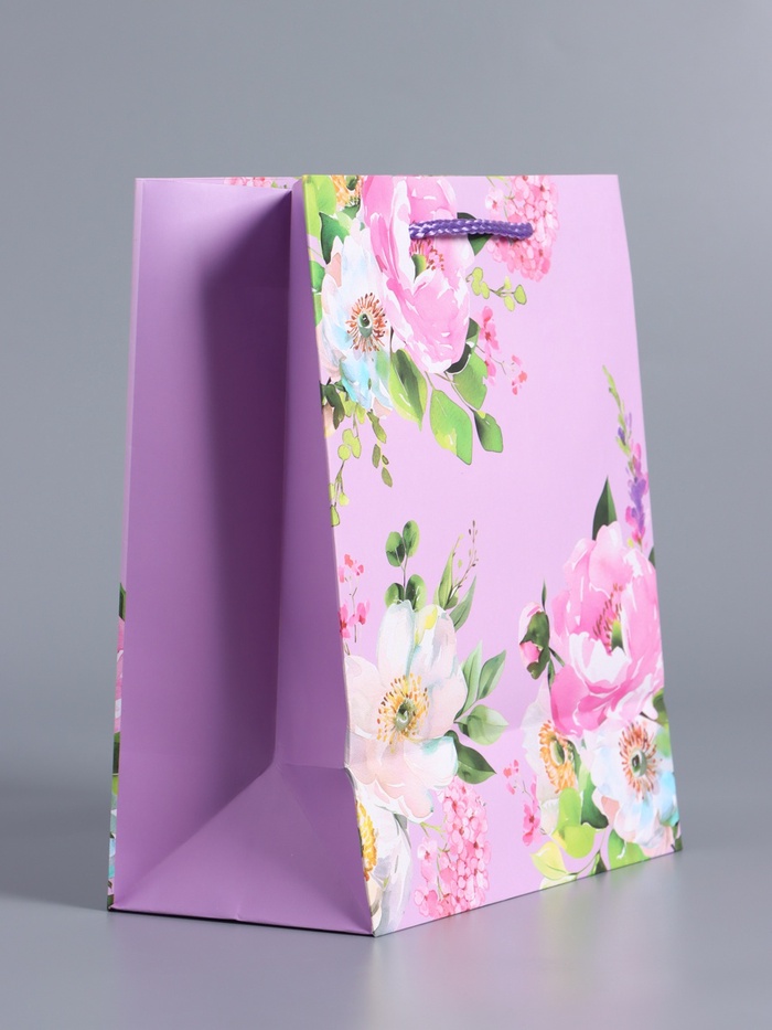 Пакет подарочный ламинированный «Радость», сиреневый, 18×22.3×10 см