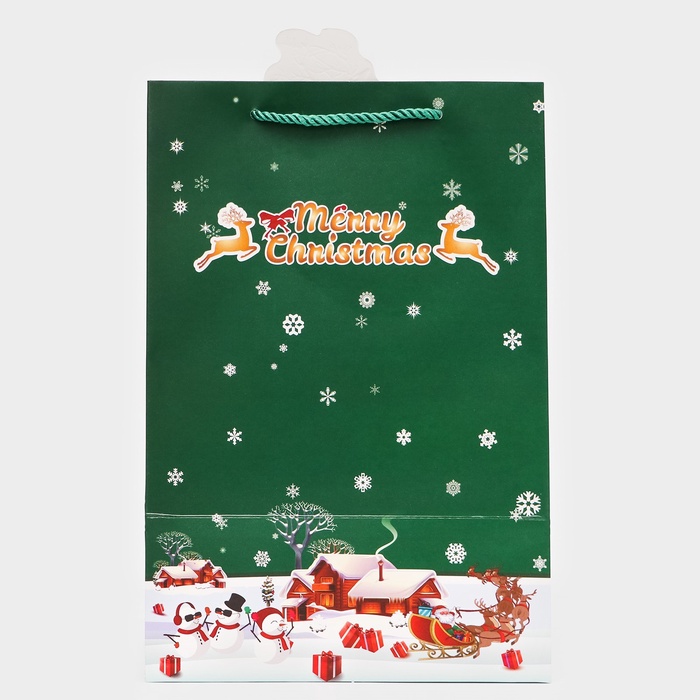 Пакет подарочный ламинированный с окном «Новый год» тиснение, 30×20×16 см, зеленый