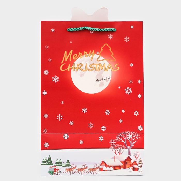 Пакет подарочный ламинированный с окном «Рождественский звон», тиснение 30×20×16 см, красный