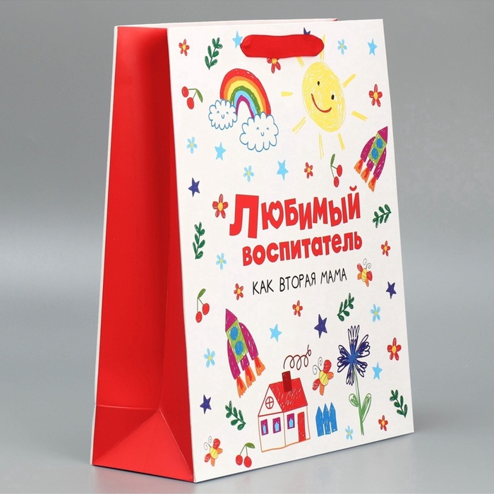Пакет подарочный ламинированный, упаковка, «Любимый воспитатель», M 25.5 х 30 х 9 см