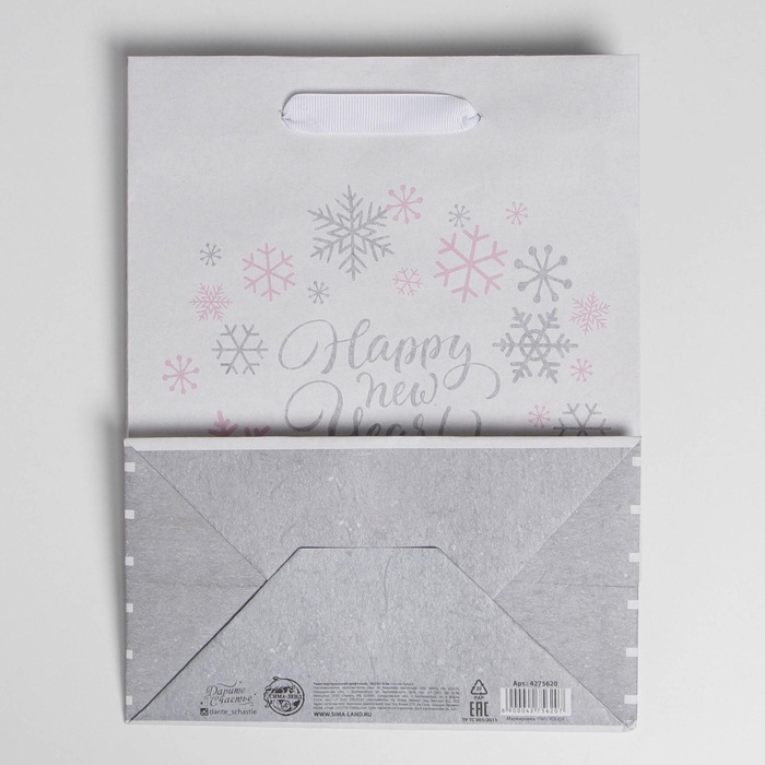 Пакет подарочный новогодний крафтовый Happy new year!, MS 18×23×10 см