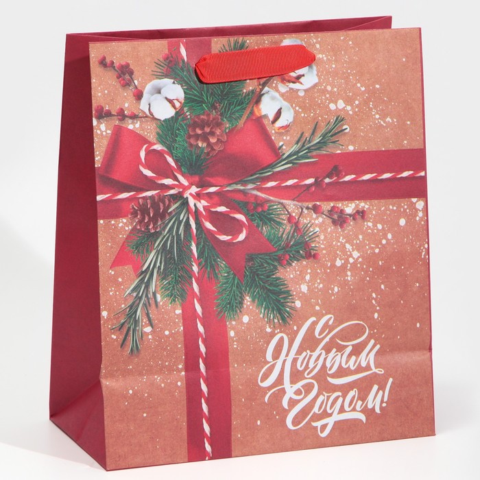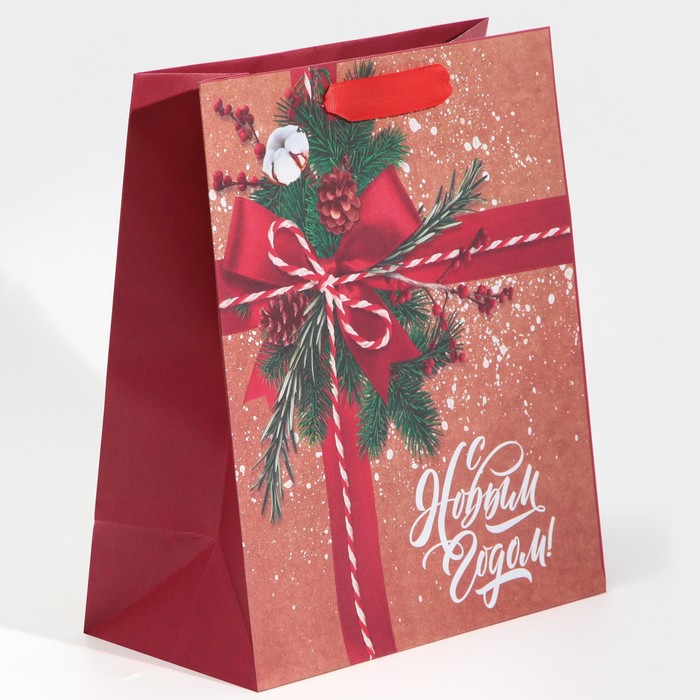 Пакет подарочный новогодний крафтовый вертикальный «Подарок для тебя», ML 23 х 27 х 11,5 см