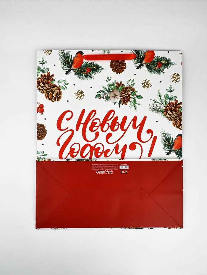 Стильный новогодний пакет с ламинацией используют как упаковку для подарка. Благодаря своему оригинальному дизайну и привлекательному внешнему виду он создаст праздничное настроение получателю и не оставит его равнодушным.