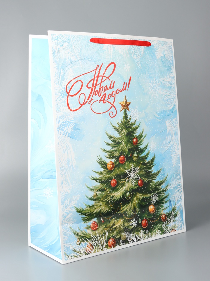 Пакет ламинированный новогодний вертикальный размером XXL 61 х 46 х 20 см — идеальный выбор для упаковки новогодних подарков!