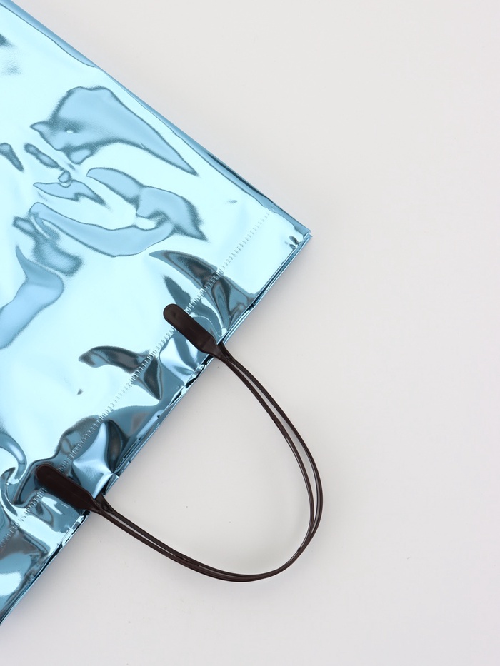Пакет подарочный ПВХ, голография, голубой, пластиковая ручка, 26×22.5×10 см