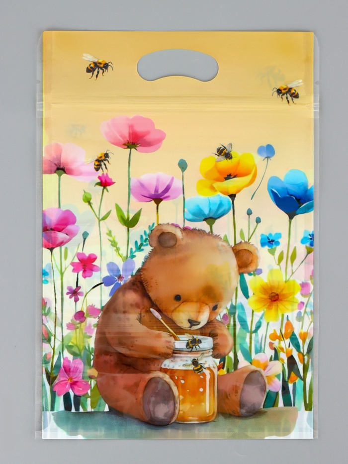 Пакет подарочный, с zip-lock застежкой, "Медвежонок", 15х23 ± 1см