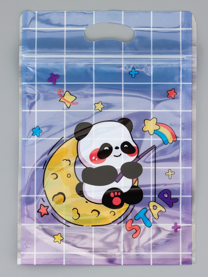 Пакет подарочный, с zip-lock застежкой, "Панда на луне", 15х23 ± 1см МИКС