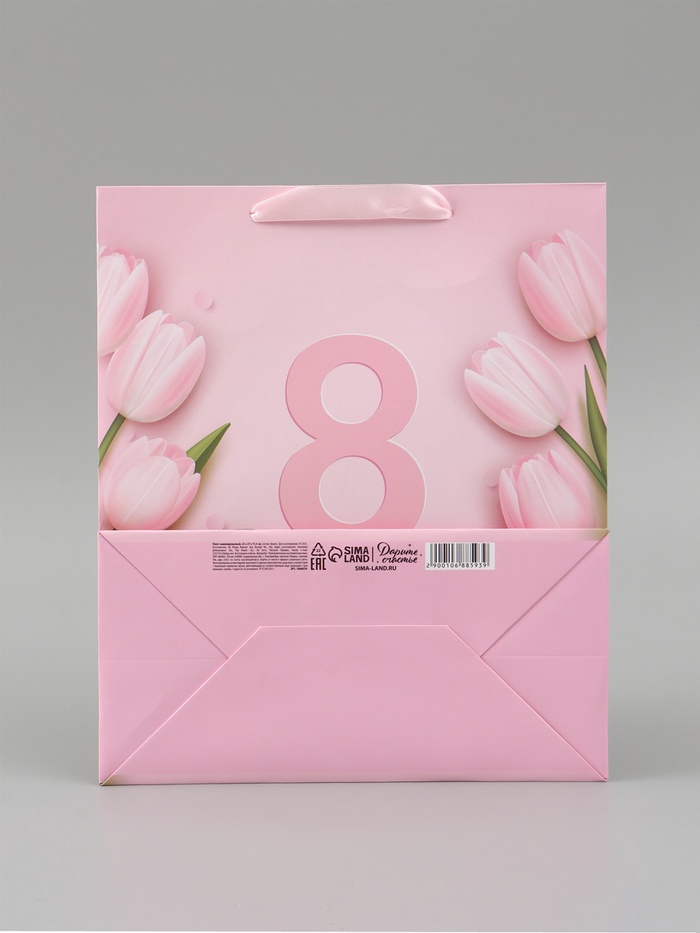 Пакет подарочный вертикальный «8 Марта», ML 23×27×11.5 см