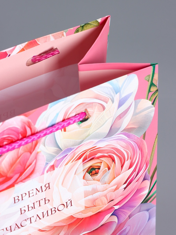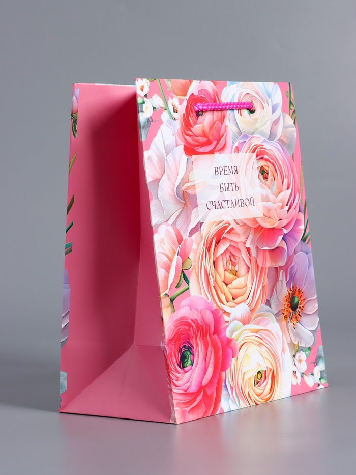 Пакет подарочный "Время быть счастливой" ламинированный 18 х 22,3 х 10 см