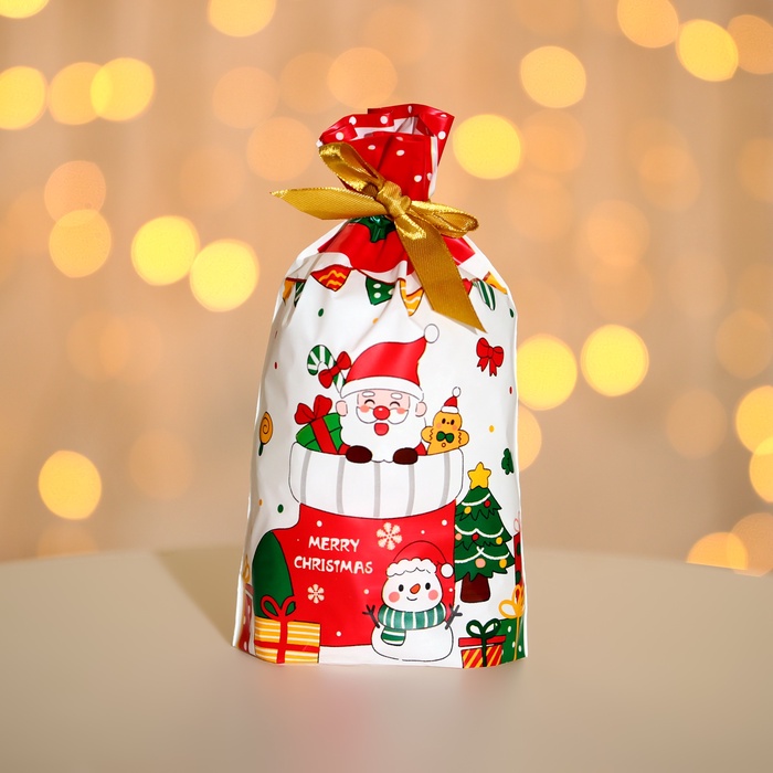 - Традиционный дизайн: Классические новогодние цвета и рисунок рождественского носка создают праздничное настроение. Плотность 30 мкм обеспечивает прочность.