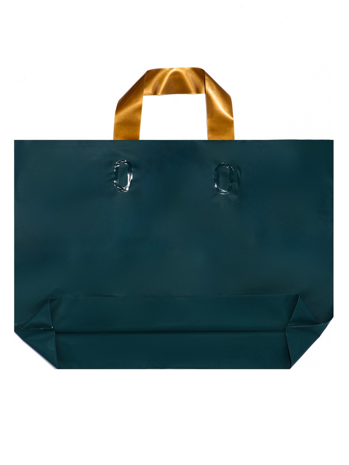 Зелёный пакет с петлевой ручкой — это удобное и практичное решение для повседневного использования. Его компактный размер и прочная конструкция делают его идеальным выбором для переноски небольших покупок или личных вещей. Благодаря донной складке пакет сохраняет форму даже при максимальной загрузке.