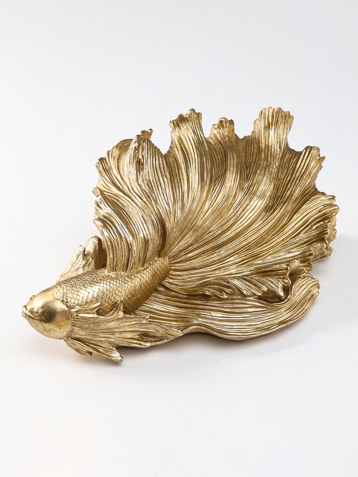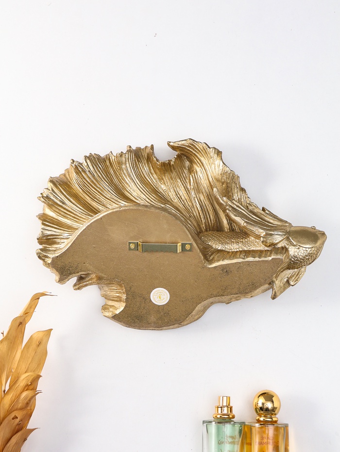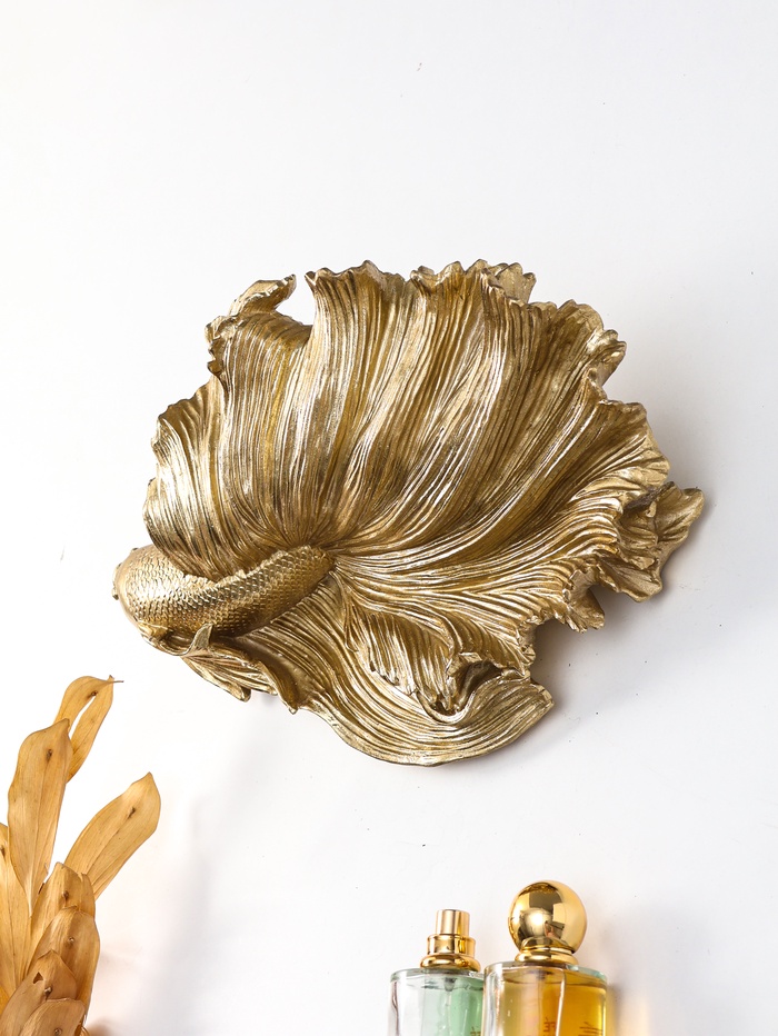 Это настенное панно с золотой рыбкой приносит в дом атмосферу спокойной морской глубины и намёк на исполнение желаний. Изящный вуалехвост, отлитый в детализированной скульптуре, словно замер в момент плавного движения, создавая живую динамику на стене. Панно становится смысловым акцентом в гостиной, спальне или ванной комнате, привнося с собой энергию воды, процветания и умиротворения.