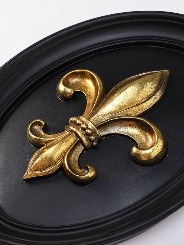 Это настенное панно с геральдической лилией — символ благородства и изящной силы. Его лаконичная форма и контраст чёрного с золотом создают акцент утончённого вкуса, подчёркивая статус интерьера. Изделие подходит для кабинета, гостиной или парадной зоны, добавляя пространству историческую глубину и визуальную завершённость.