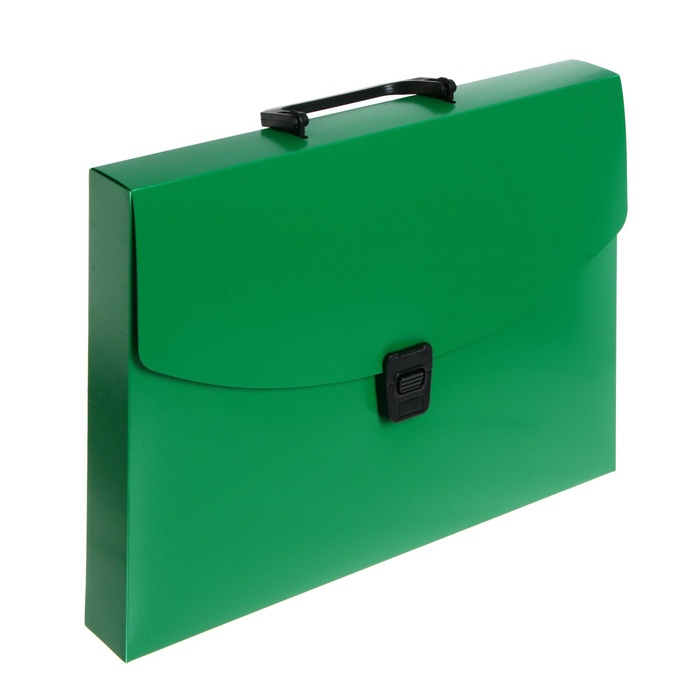 Вместительная папка-портфель предназначена для безопасной транспортировки документов. Она позволит упорядочить бумаги и сохранить их в целости. Формат: А4. Количество отделений: 1. Толщина: 700 мкм. Вмещает до 300 листов. Цвет: зелёный.