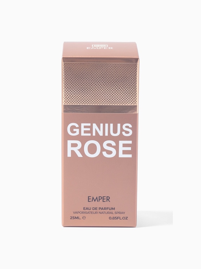 GENIUS ROSE — идеальный выбор для женщин, которые ценят стиль, свежесть и утонченную роскошь. Компактный флакон на 25 мл удобно носить с собой, чтобы наслаждаться ароматом в любое время и в любой обстановке. Этот парфюм — настоящая гармония праздника, женственности и уверенности в себе.
