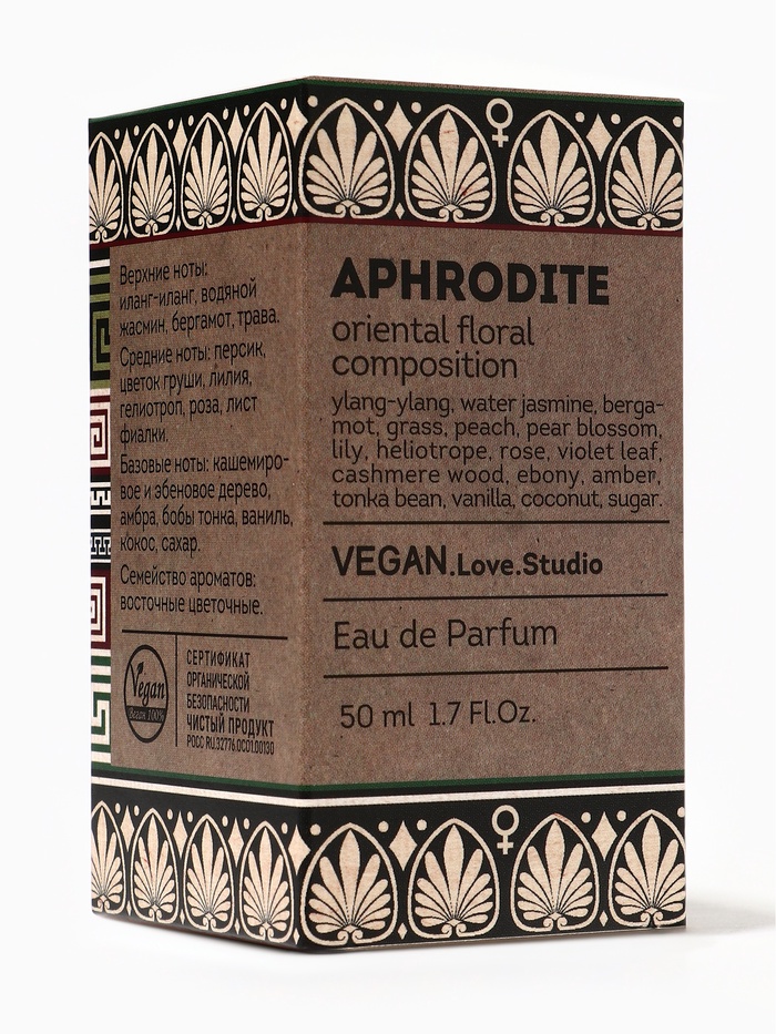 Vegan Love Studio Aphrodite, 50 мл — это аромат для женщин, которые любят уникальность, свежесть и элегантность, оставляя после себя лёгкий, сияющий и притягательный шлейф.