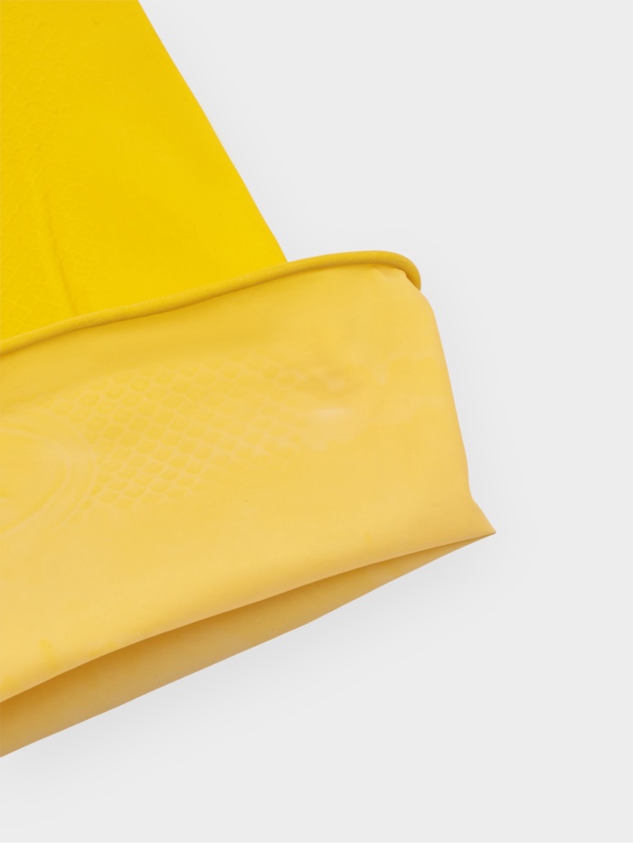 Перчатки производят из каучука — натуральной резины. Он водонепроницаем и хорошо растягивается: даже после неоднократного использования материал не теряет своих свойств.