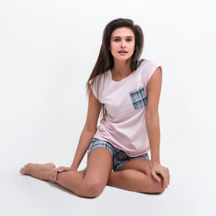 Пижама KAFTAN "Клетка" шорты, футболка, р. 52-54, розовый/серый