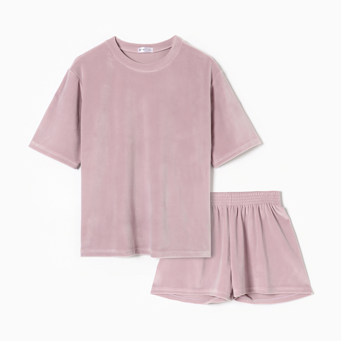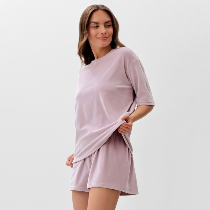Пижама женская (футболка, шорты) KAFTAN Plushy, размер 52-54, лиловая