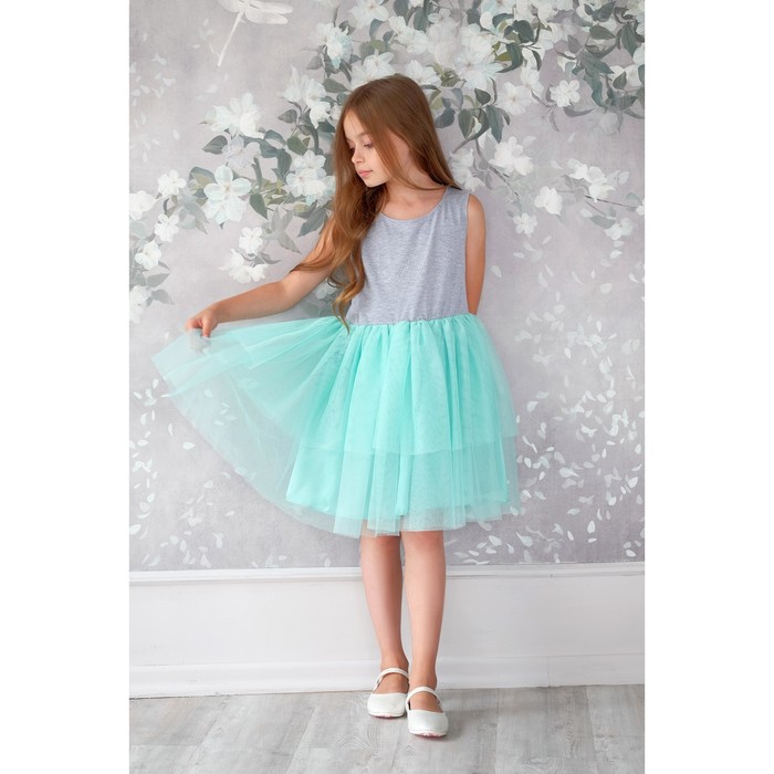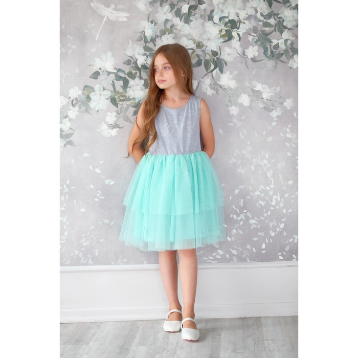 Платье нарядное детское KAFTAN, рост 86-92 см (28), серый, бирюзовый