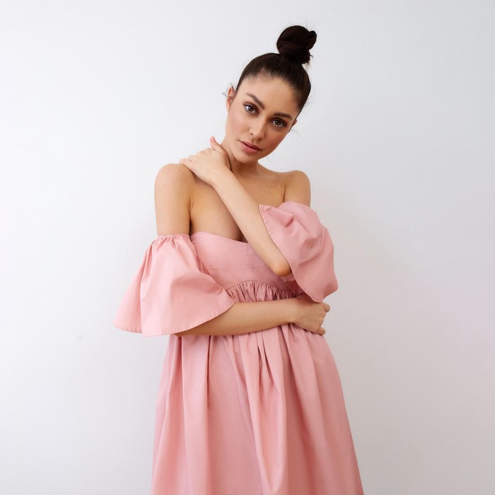 Платье с открытыми плечами MIST, размер 46, цвет розовый