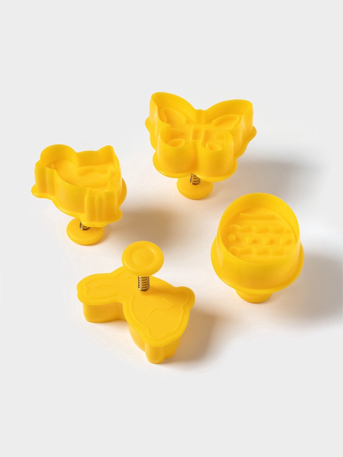 - 4 фигурных плунжера размером 5×5 см — в наборе только пасхальные мотивы (яйцо, кролик и другие символы).