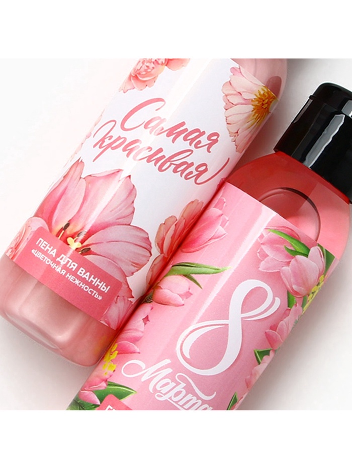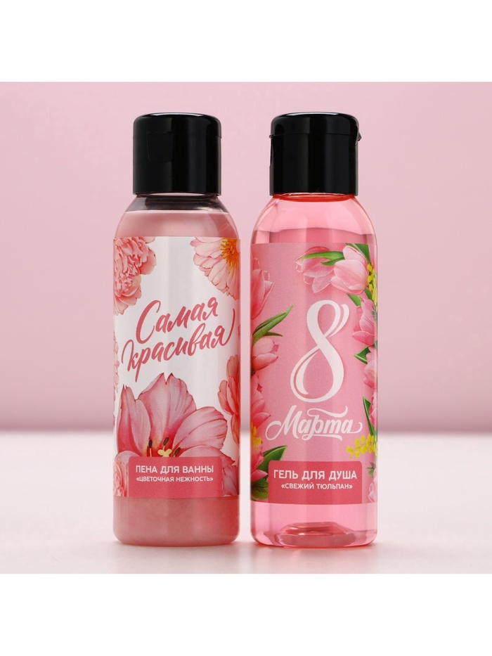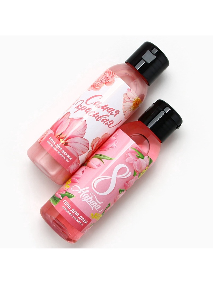 Подарочный набор «8 Марта!», гель для душа и пена для ванны 2×100 мл, мочалка для тела, Чистое счастье