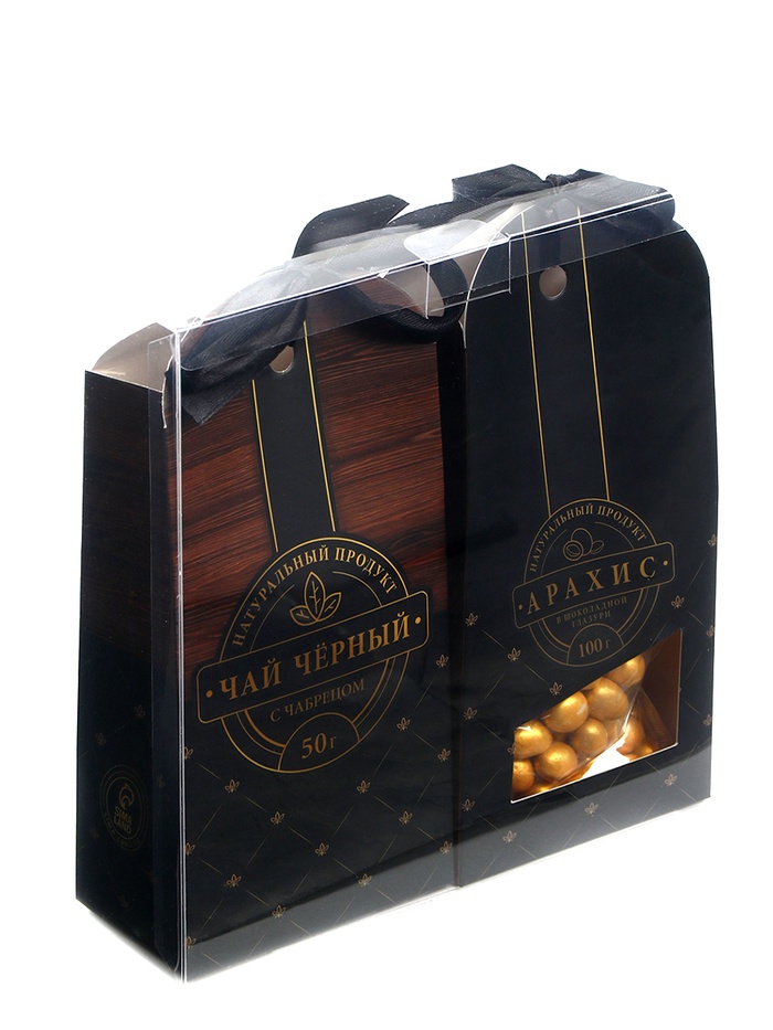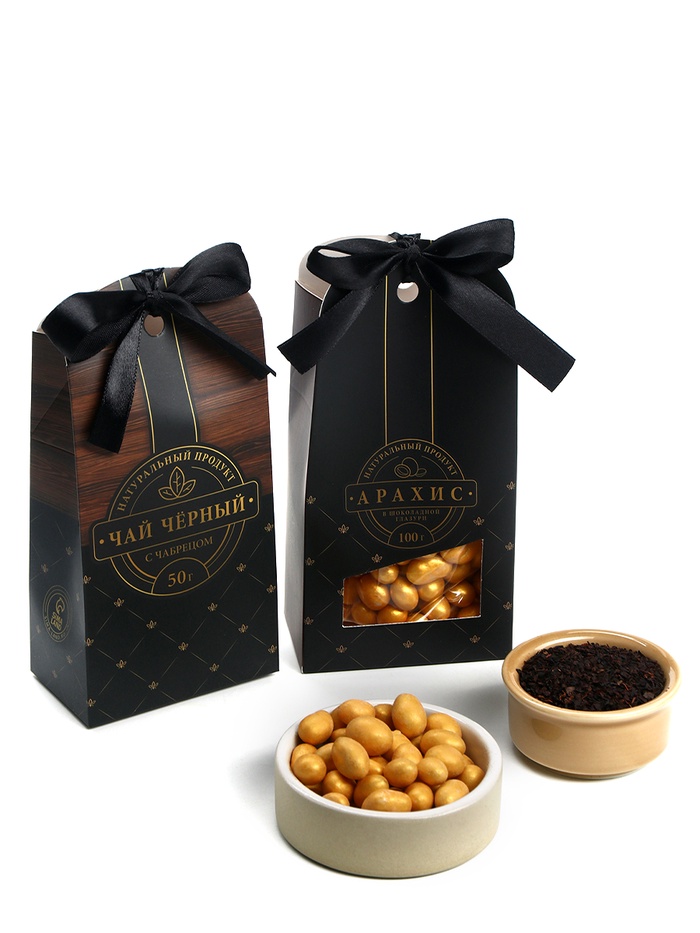 Подарочный набор «Деревянный: мужской»: чай, арахис в шоколадной глазури