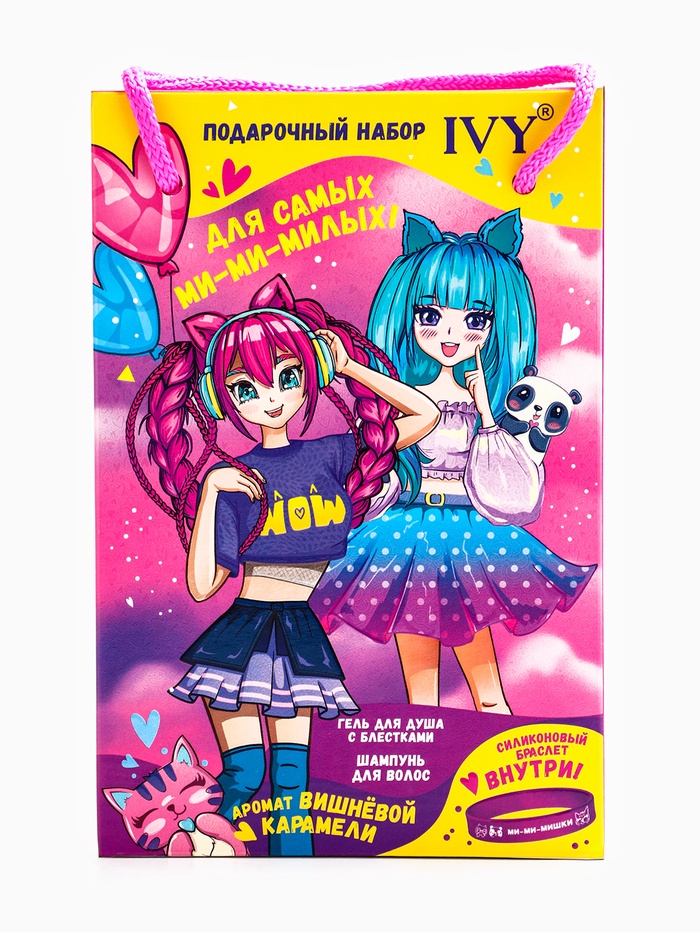 Подарочный набор детский IVY, шампунь 200 мл, гель для душа 200 мл, браслет силиконовый, аромат вишневая карамель