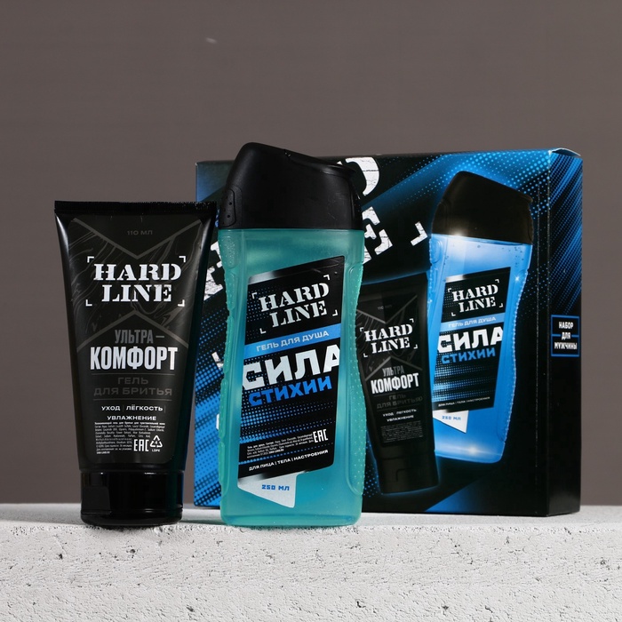 Подарочный набор косметики «23 февраля: Сила стихии», гель для душа 250 мл и гель для бритья 110 мл, HARD LINE