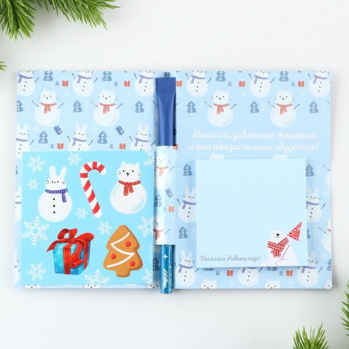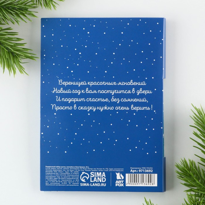 Подарочный набор новогодний, блок для записей 30 листов, ручка синяя паста, наклейки 5 шт. «С Новым Годом»