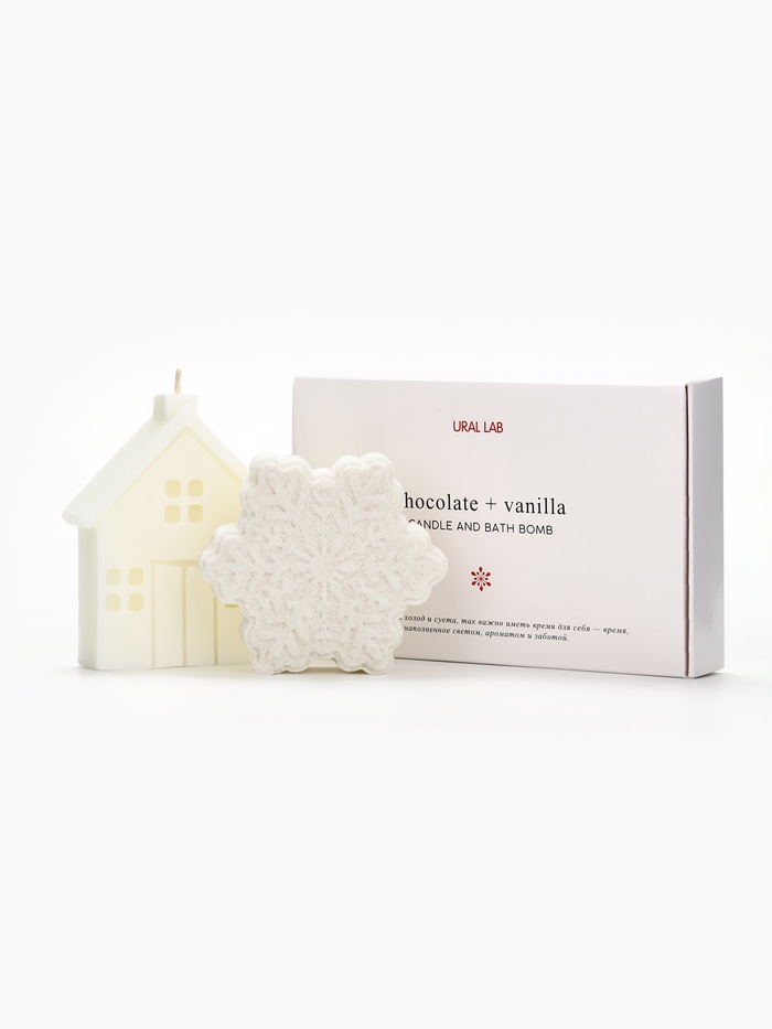 Подарочный набор новогодний: бомбочка снежинка и фигурная свеча дом, URAL LAB