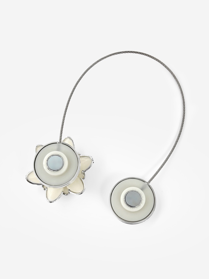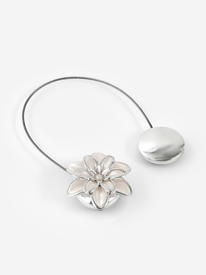 Подхват (1) д/штор на тросе (ПАРА) цветок Георгин d6см серебристо-белый АУ МП