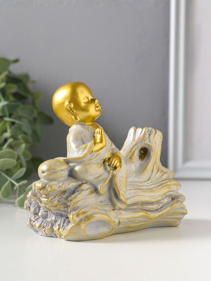 Подставка для благовоний "Хотей на коряге" стелющийся дым, беж с патиной 12,5х5,5х10,5 см