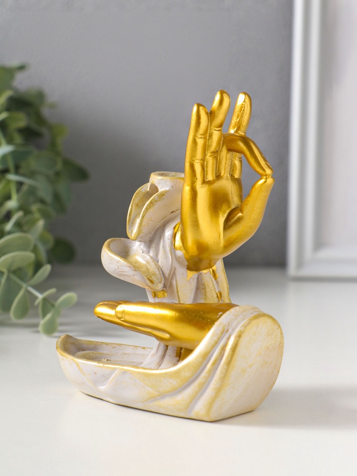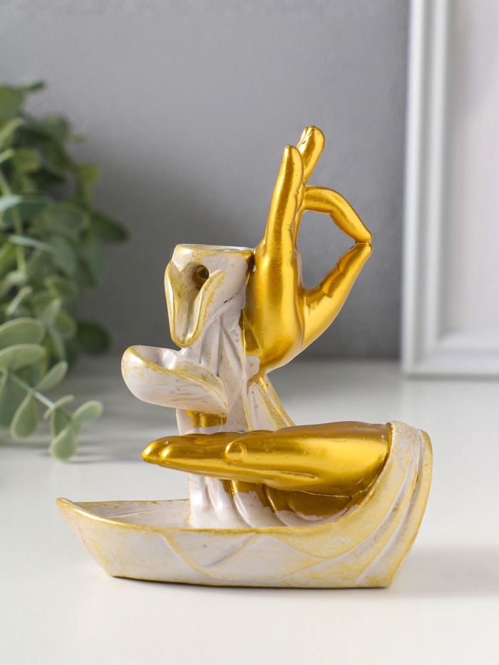 Подставка для благовоний "Мудры рук" стелющийся дым, беж с патиной 10х5,5х11,7 см