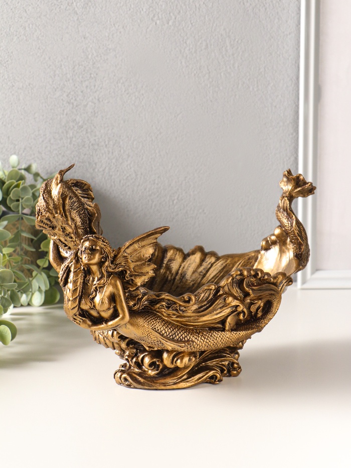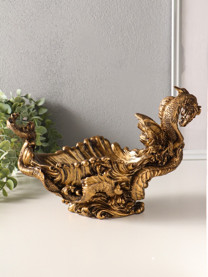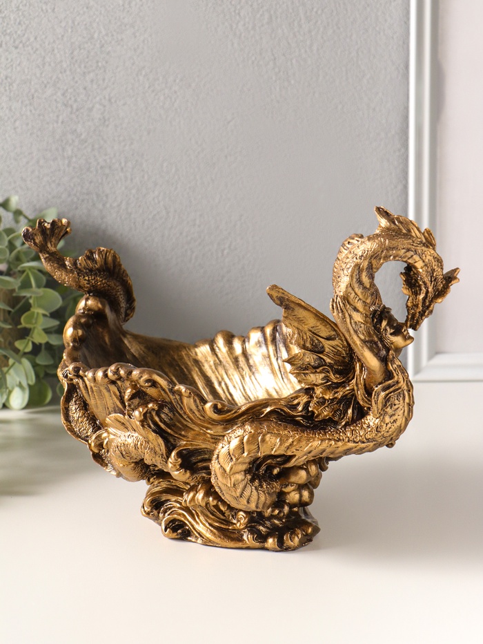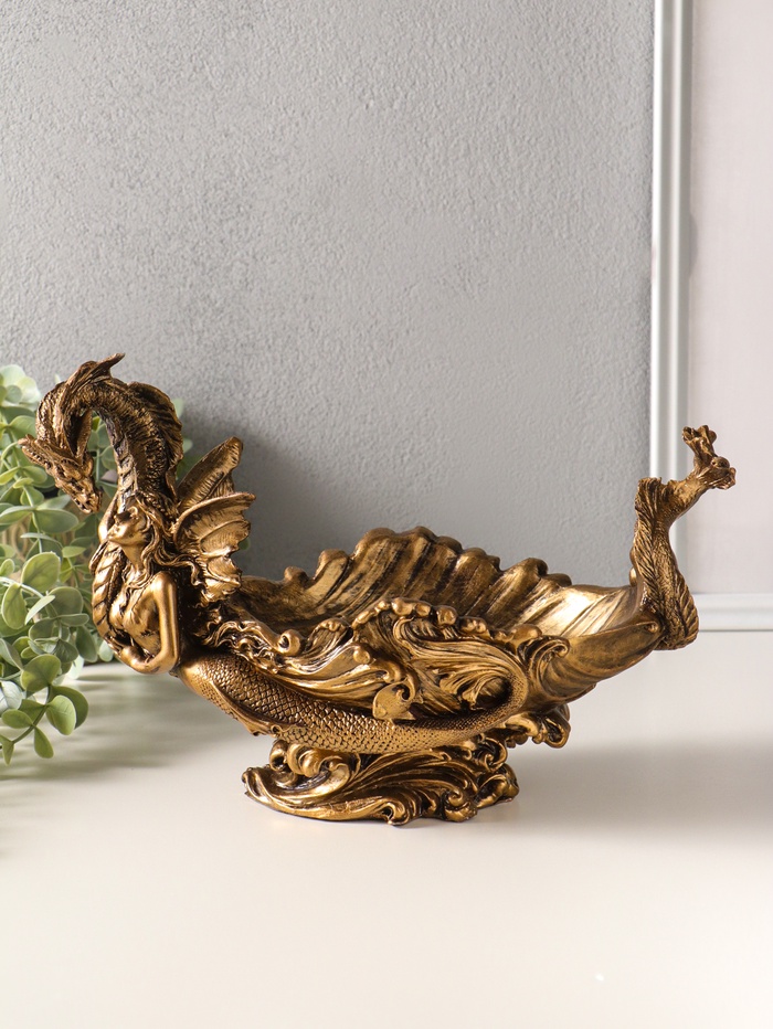 Подставка для мелочей "Девушка с драконом" 20,5х32х17 см, бронза
