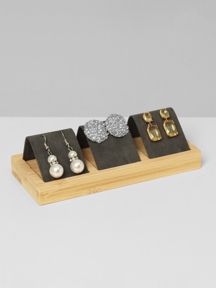 Подставка под серьги QF, дерево, 3 пары, 15.5×6.8×4.5 см, чёрная