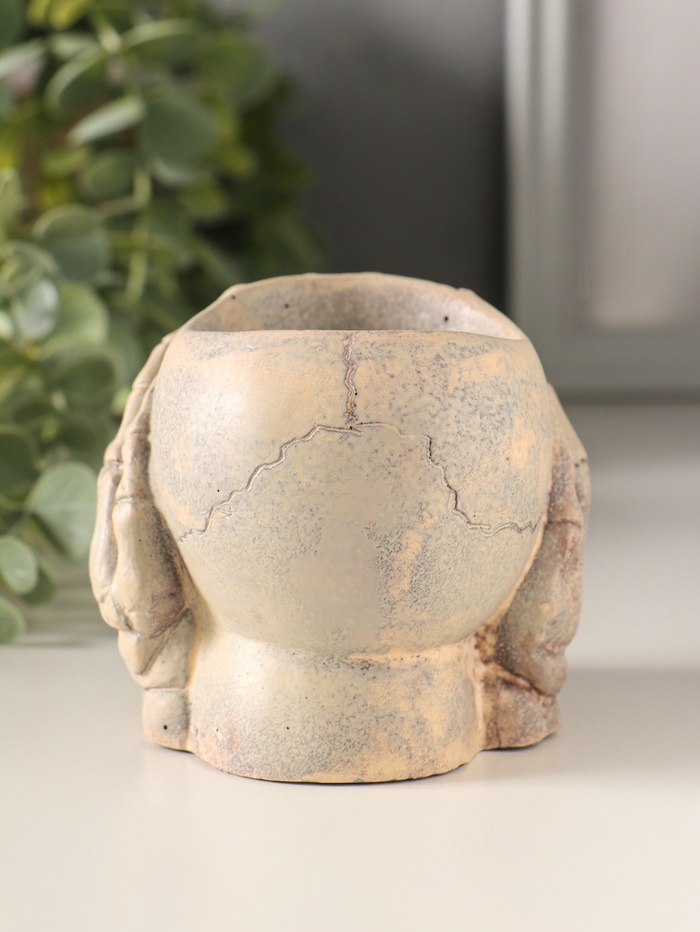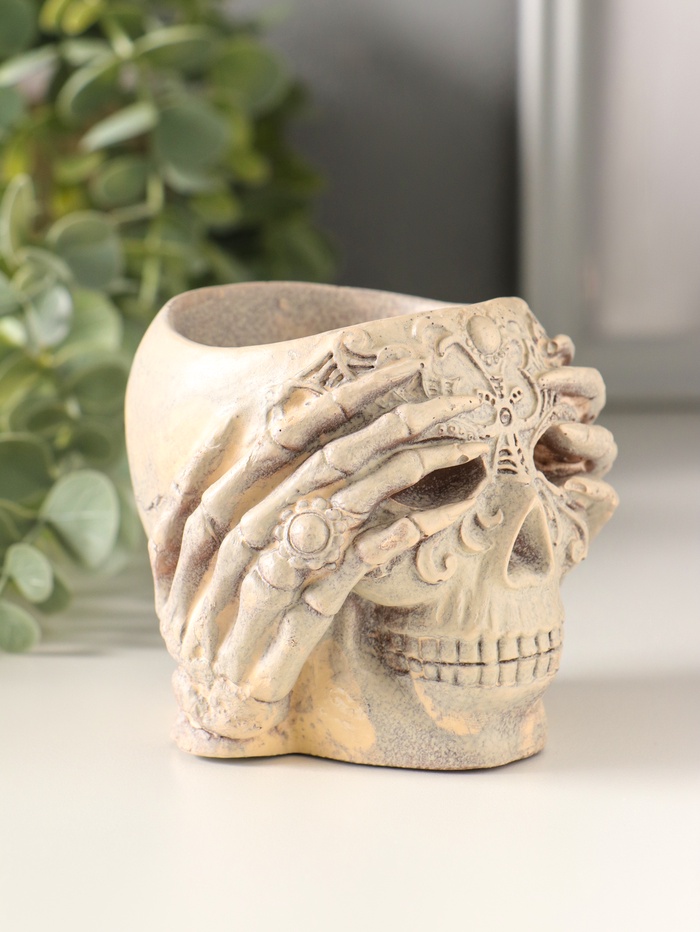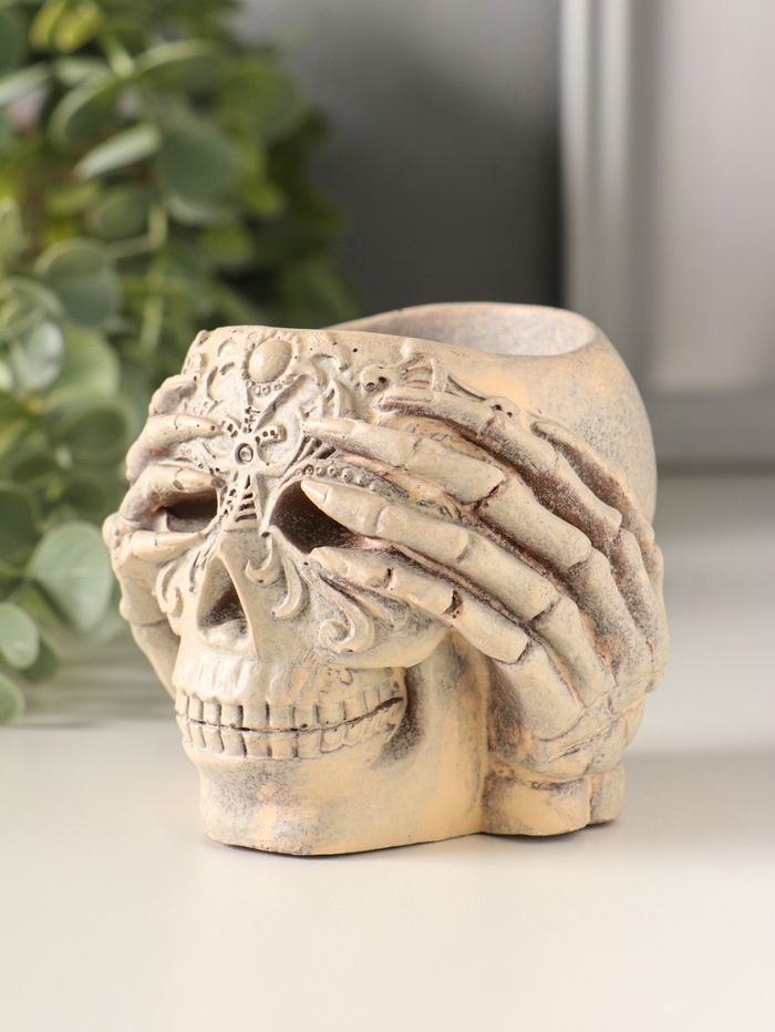 Подсвечник "Череп с орнаментом" 7х8 см, бежевый