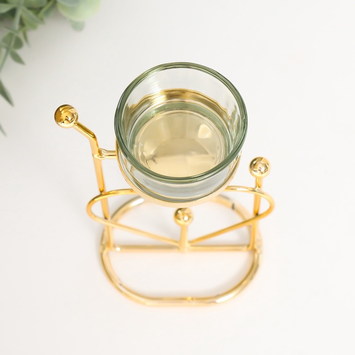 Подсвечник металлический, стекло на 1 свечу «Сердце. Шарики», d-4.5 см, золото, 9×4.5×17 см