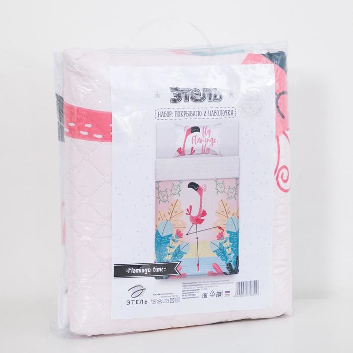 Покрывало детское и наволочка Этель 1,5 сп "Flamingo time", 145х210 см, 40х60 см, микрофибра